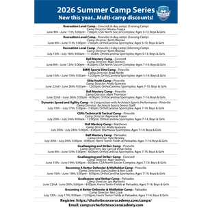 Thank you for your interest in CSA Camps! We offer a variety of soccer camps for all levels of players!
